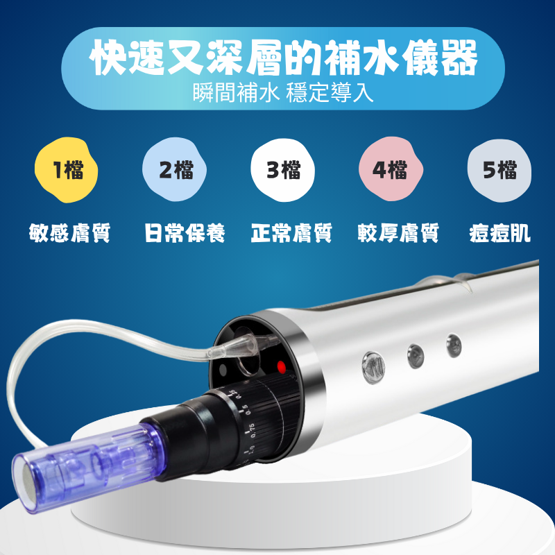 A10:市面常見多為震動或光療,本產品採用奈米導入技術,少見且溫和快速補水,是市面少數兼顧「安全+效率」的選擇。